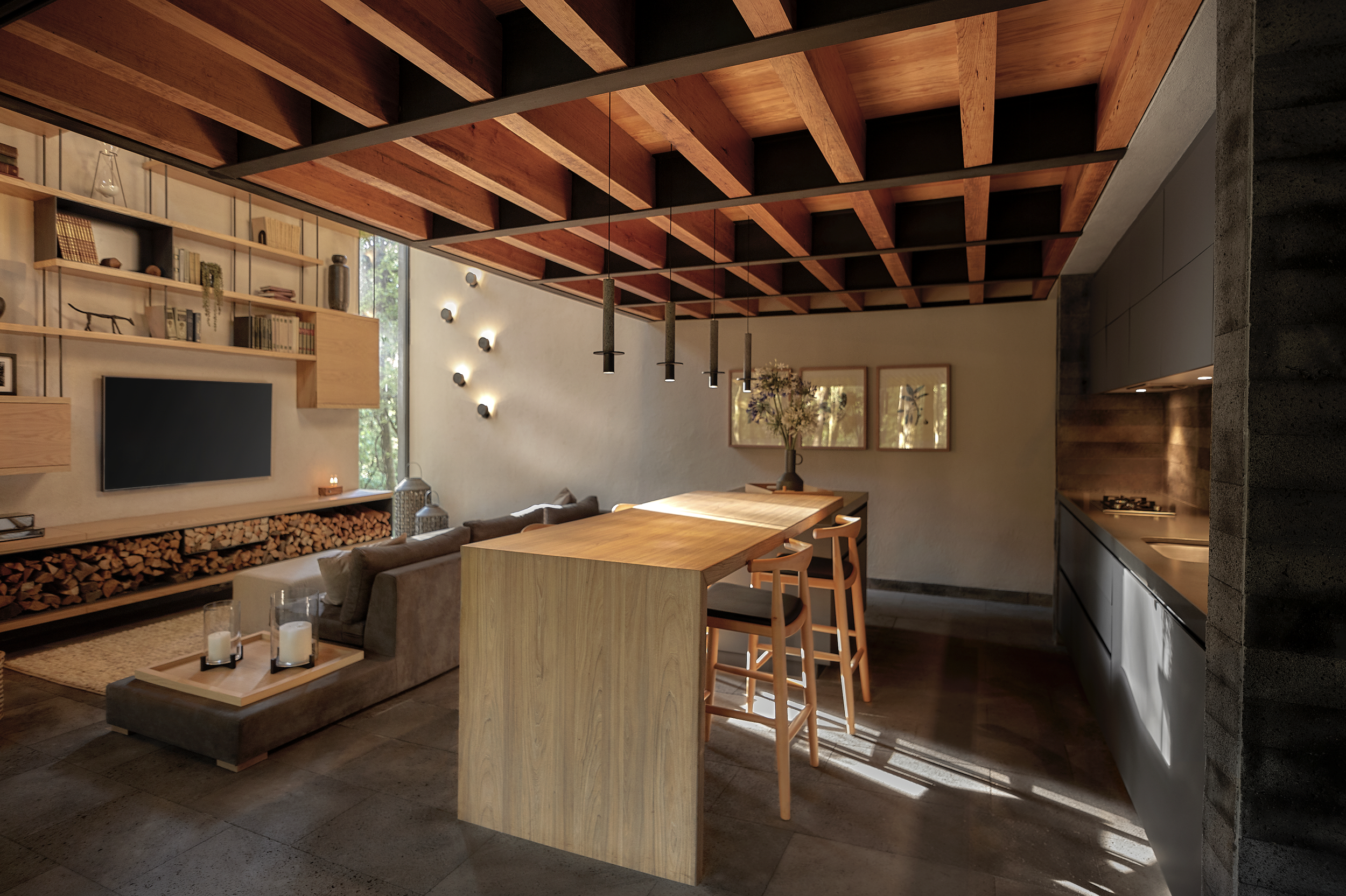 We always design thinking about the environment that surrounds us. Volcanic stone or local quarries, local wood, fabrics and colors that give us a feeling of warmth and provide a link with nature. We create environments of rest and relaxation seeking comfort and practicality in forest contexts.